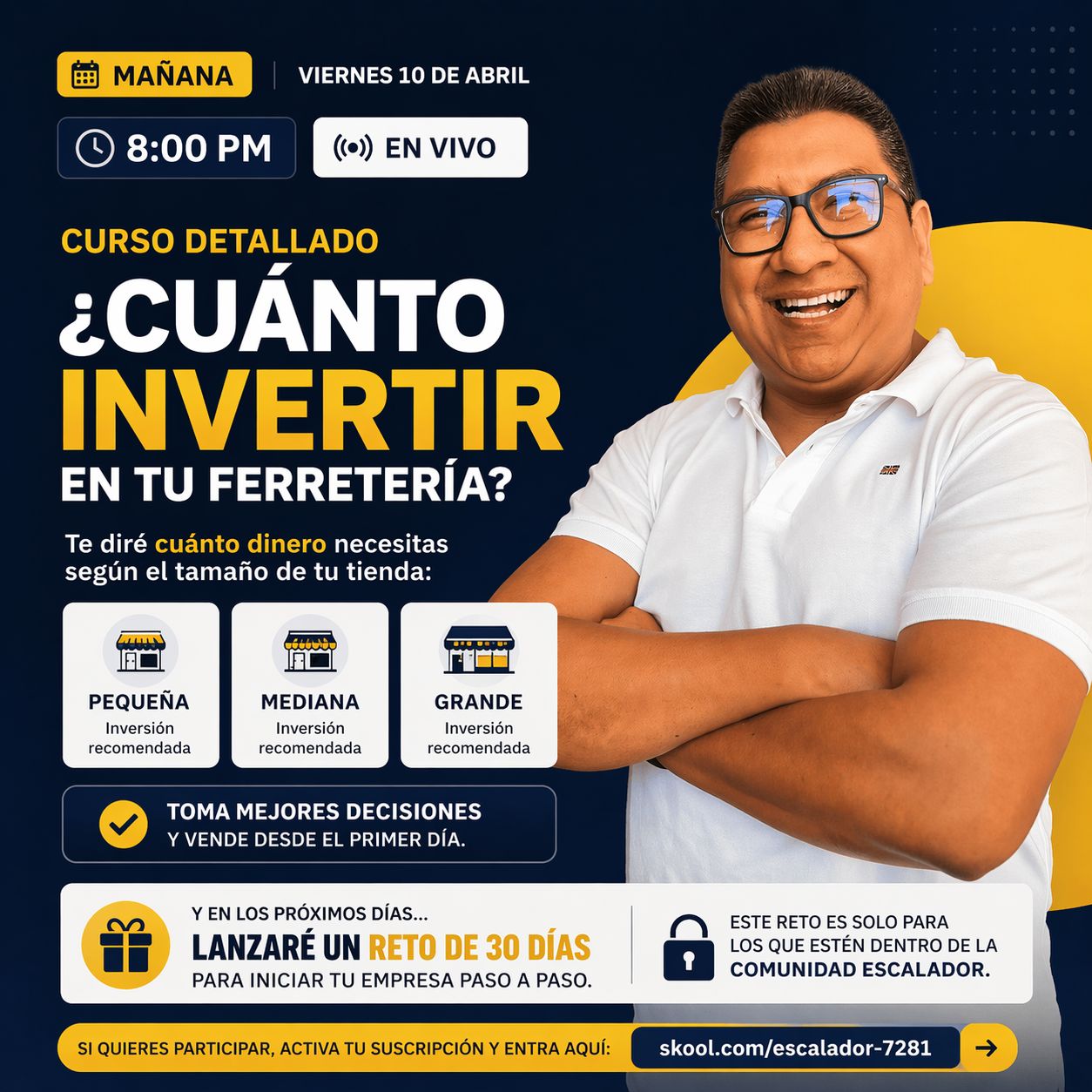 Mañana, viernes 10 de abril a las 8:00 PM, tendré un curso en vivo sobre un tema clave para cualquiera que quiere abrir una ferretería con más claridad: cuánto dinero invertir desde el inicio.